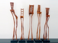 Dieter Gaiss wurde eher zufällig vom Sägevirus befallen. Dies war 2008, als er auf der art Karlsruhe mit Kettensägearbeiten konfrontiert wurde. Seitdem widmet er sich leidenschaftlich der Herstellung von filigranen Holzskulpturen. Sein ganzer Ehrgeiz ist es, alle seine Werke nur mit der Kettensäge herzustellen. Herausgekommen ist die fantastische Metamorphose eines Gebrauchsgegenstandes, des Sitzmöbels Stuhl. In erstaunlich filigraner Sägearbeit entstehen sogenannte Stuhlgewächse, Stelzengänger, Charakterstühle oder wie auch immer man es auffassen will. Es ist jedenfalls ein herrlich amüsantes Spiel der Formen. Jede Stuhlskulptur hat eine eigene Persönlichkeit, die mit der Säge herausgearbeitet wird. Dieter Gaiss, 1956 in Göppingen geboren, lebt und arbeite in Gammelshausen am Fuße der Schwäbischen Alb.