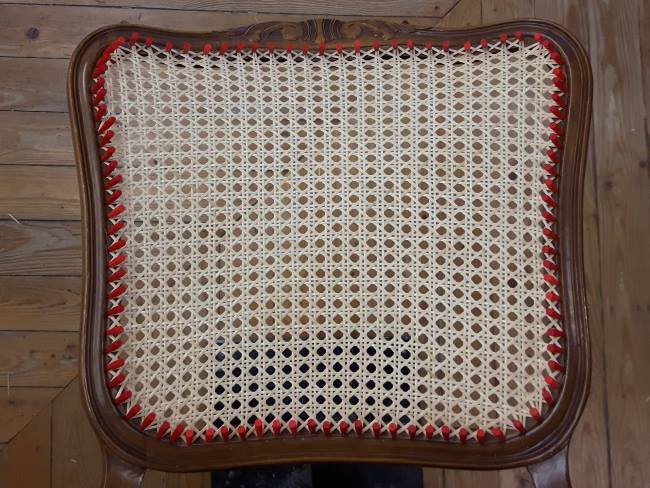 Ein sehr dekoratives Geflecht ist das Sterngeflecht. Es eignet sich nicht für Stühle, die sehr strapaziert werden, es bleibt am besten Schlafzimmerstühlen vorbehalten, die mehr zur Ablage von Kleidern dienen als zum Sitzen.