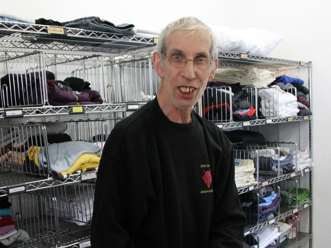Unsere in der Wäscherei tätigen Bewohner sind dabei mit allen anfallenden Arbeitsschritten betraut – von der Annahme einer Lieferung über Reinigen, Mangeln, Bügeln und Falten bis zur korrekten Zuordnung des Auftrages zu den jeweiligen Auftraggebern.